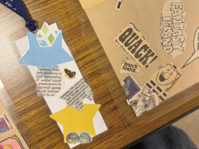 オリジナルしおりを作ろう 好きなキャラクターや折り紙や新聞、テープを切り貼り、ラミネート。リボンをつけてオリジナルしおりを作ります。 |